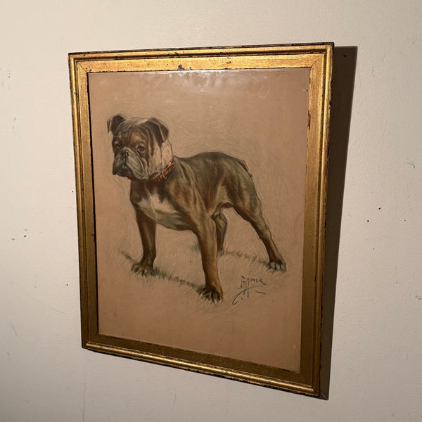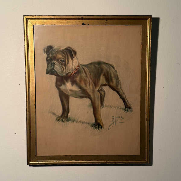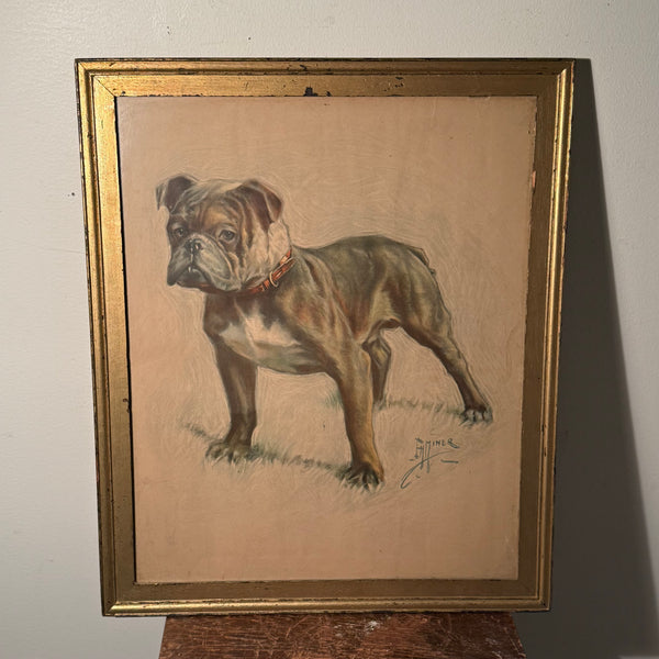 Here we have a piece that doesn’t ask for your attention—it demands it. This is an early 20th-century lithograph of an English Bulldog, captured with a level of anatomical aggression that modern breeders have bred out of the line. This is the bulldog of the pits and the alleyways, rendered by Ernest Herbert Miner with a cold, unsentimental eye.