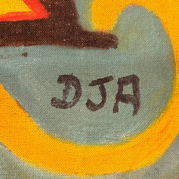 As stated previously, the paintings were found at a local marché aux puces (flea market) in Paris, France. The paintings are signed with the initials "DJA" in the lower right corner of both works. Based on the aged colors on the reverse they were likely created in the 1940s or 1950s.