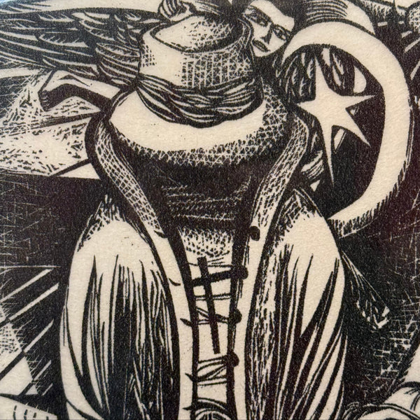 The unframed, exposed woodcut measures just under 11" tall and 8" wide. The print and matting measures 20” x 16”. The woodcut looks to be in very good shape. Please see all pics as they are part of the description.