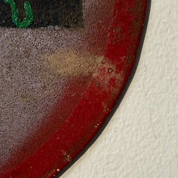 Here we have a Milwaukee relic from the late 1960s to early 1970s underground hippie scene. This One Way beauty pops and sends you straight to the flower moon. I was told this folk art adapted sign hung outside of a hippie commune somewhere in the Milwaukee area. I can see the crew nodding at this sign as they walk towards enlightenment.  And the color palette is genius. I’m a sucker for the play of black and red with the cool little accents.